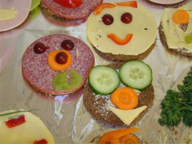 Kinder lustige Maskenbrote und gestalteten sie mit vielerlei