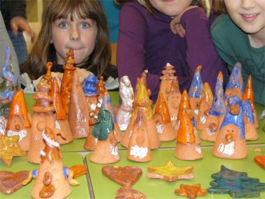 Die Kinder können erleben, wie sich das Material Ton durch das Brennen verändert und zu attraktiven Dekorationsgegenständen wird.