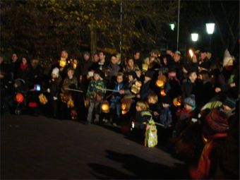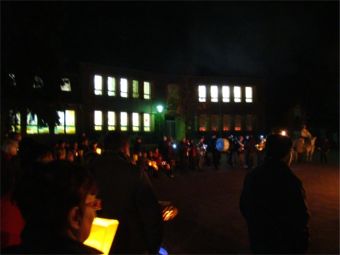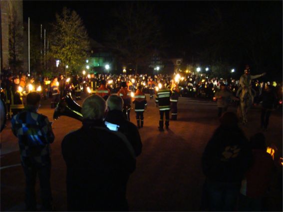 Auf dem Schulhof endete der Zug. Die sternenklare Nacht, das trockene Wetter, die vielen Lichter und die zahlreichen Gäste vermittelten eine sehr stimmungsvolle Kulisse.