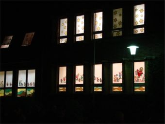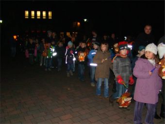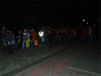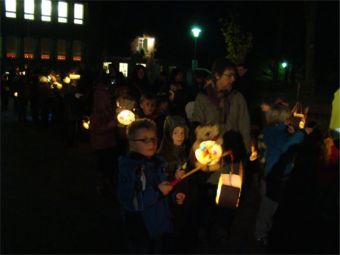 Am 12.11.2012 stellte sich der Martinszug Veen vor der schön geschmückten Grundschule auf. Der Zug setzte sich gegen 18 Uhr in Bewegung und zog durch das mit vielen Lichtern und Transparenten geschmückte Dorf. |