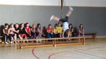 Die Klasse 3/4 c hatte im Sportunterricht einige Übungen vorbereitet, die am 3. Februar 2012 allen Kindern und interessierten Eltern der Schule vorgeführt wurden. Niels Thöne war der Conferencier. Herr Theisejans hat die Fotos gemacht. |