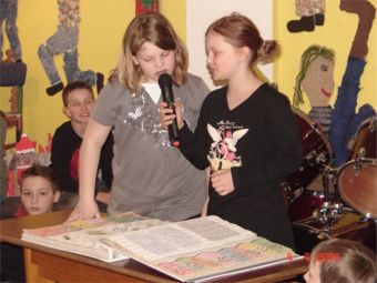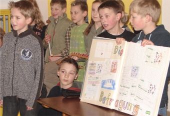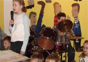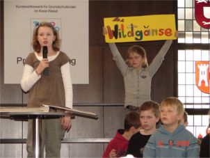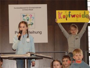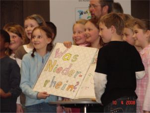 Bühne Frei für die Klasse 3/ 4 b mit ihrem Rap: „Was ist Niederrhein?“ |