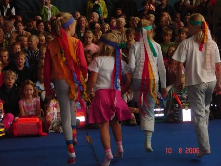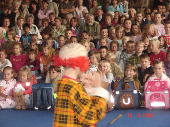 Am 10. August 2006 wurden 34 Kinder eingeschult. Wie auch in den letzten Jahren fand nach dem Einschulungsgottesdienst in der Veener Dorfkirche die Einschulungsfeier in unserer Turnhalle statt. Alle Kinder der Schule, Lehrer und Eltern waren dabei und begrüßten die Schulanfänger mit lautem Beifall. In diesem Jahr hatten die Kinder der Projektgruppe Theater und Musik unter Leitung von Frau Winzen eine „Zirkusvorstellung" für die Schulanfänger eingeübt. Die Schulanfänger gingen nach der Feier zur ersten Unterrichtsstunde in ihre Klassen. Klassenlehrerinnen der 1a und der 1b sind Frau Genneper und Frau Davids. |