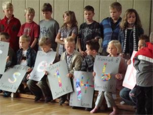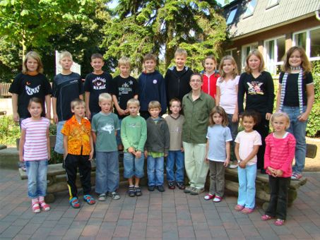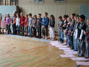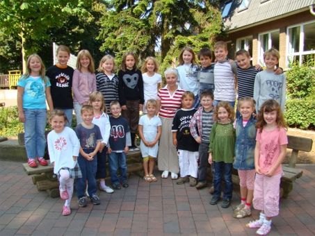 Am 12. August 2008 wurden 28 Kinder eingeschult. Wie auch in den letzten Jahren fand nach dem Einschulungsgottesdienst in der Veener Dorfkirche, gestaltet von Frau Salamon und Frau Stracke, die Einschulungsfeier in unserer Turnhalle statt. Alle Kinder der Schule, Lehrer und Eltern waren dabei und begrüßten die Schulanfänger mit lautem Beifall. In diesem Schuljahr bilden die Schulanfänger zusammen mit den Kindern des 4. Jahrgangs drei Klassen. Die „Großen“ hatten sich lange auf diesen Einschulungstag vorbereitet. Jeder Schulanfänger hatte einen Paten. Die Paten kannten die Namen ihrer Schützlinge und riefen bei der Einschulungsfeier jedes Kind bei seinem Namen zu sich herbei. Die Paten hatten für die Kleinen ein Plakat mit dem Namen und einem Buchstaben vorbereitet. Die Buchstaben ergaben hintereinander gelesen den Namen der neuen Klasse. Jeder Schulanfänger bekam von seinem Paten noch einen wichtigen Hinweis zum Schulalltag oder einen guten Rat mit auf den Weg. Zum Beispiel: „Bei Frau Blaschke musst du ganz leise sein!“ oder „Du kannst Kakao, Vanillemilch oder Erdbeermilch bestellen“. Die Klassenlehrerinnen: Frau Blaschke 4/1 a, Frau Winzen 4/ 1 b und Frau Gluzek 4/1 c. Frau Winzen hatte die Idee für das kleine Programm, das in diesem Jahr mit gut geübten Liedern in der Qualität von Ohrwürmern ergänzt wurde. Die Paten und alle Schüler der Schule schmetterten: „Let's say hello...“ „Anders als du ...“ „Alle Kinder lernen lesen...“ „Schön ist es auf der Welt zu sein ...“ Die Schulanfänger gingen nach der Feier zur ersten Unterrichtsstunde in ihre Klassen. |