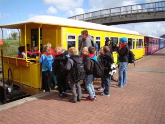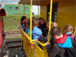 Spielplatz am Bahnhof. Um halb elf fuhren wir mit der Inselbahn