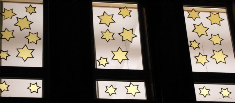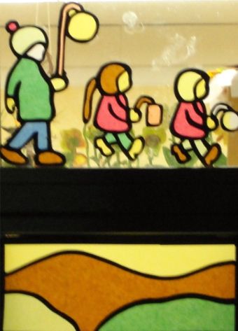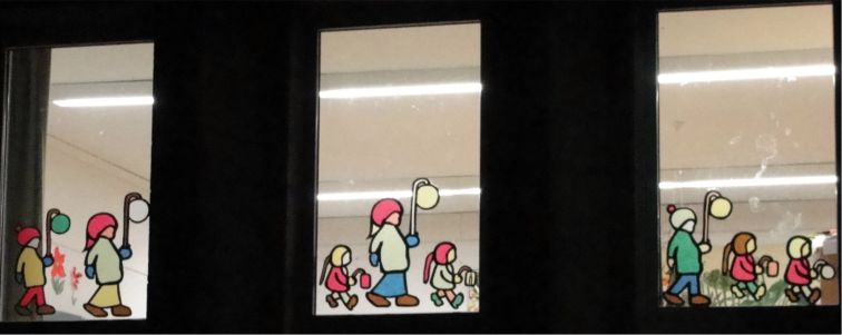 Am 28.Oktober 2010 verwandelten viele geschickte Bastlerhände die Fenster der Schule in eine wunderschöne St.Martins-Kulisse. Im Obergeschoss strahlen jetzt viele gelbe Sterne über einem langen Martinszug in den unteren Klassen, der aus etwa 50 Laternen tragenden Kindern besteht. Der Zug bewegt sich zum Mantel teilenden St. Martin im Büchereifenster. Die Unterlichter der Fenster sind einheitlich mit Landschaftsbildern geschmückt. Zum St. Martinstag werden alle Fenster noch mit weißen Transparentpapiervorhängen hinterklebt, die das Licht der Klassenbeleuchtung streuen sollen.