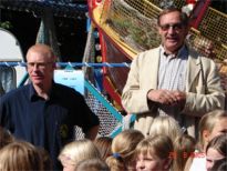 Der Schützenkönig, Johannes Gietmann und der Ortsvorsteher Karl Wilhelm Schweden begrüßten die Kinder, Eltern und Lehrer. |