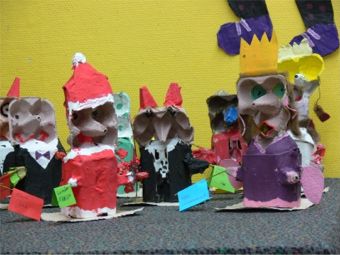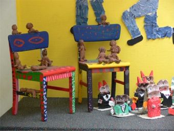Kultur und Schule – Projektgruppe „Figurengruppen“ August 2007 – Juni 2008 GGS Alpen-Veen In diesem Projekt „Figurengruppen“ stellen wir gemeinsam Figuren aus verschiedenen Materialien her. Die Kinder lernen hierbei den Umgang mit verschiedenen Materialien und Techniken kennen. Sie beschäftigen sich gemeinsam mit einem zusammenhängenden Werk. Jedes Kind kann seine Ideen einbringen und mit allen gemeinsam umsetzen. Die erste Gruppe haben wir aus Ton geformt. Jedes Kind hat sich für seine Figur einen Platz auf einem der Stühle ausgesucht, die die Kinder farbig angemalt haben. Für unsere zweite Gruppe machten wir Schattenfotos von allen Kindern. Die Schattenfiguren wurden auf eine Papierschablone übertragen und die verschiedensten Techniken wurden angewendet. Wir machten Figuren aus Holz und Pappmachée und filzten und malten und verwendeten Stoffe, Muscheln, Federn, Eierkartons, Wolle, Seidenpapier und noch vieles mehr um die Figuren „anzuziehen“. In unserer dritten und letzten Figurengruppe bauten wir lustige Figuren ausschließlich aus Eierkartons. Jedes Kind konnte hier seiner Fantasie freien Lauf lassen. Es entstanden Teufel, Engel, Vögel und vieles mehr, die sie bunt anmalten und schmückten. Die Arbeiten werden ab dem 18.01.08 im Foyer der Schule gezeigt. Brigitte Böckmann