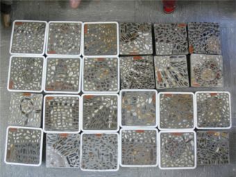 Die fertigen Arbeiten wurden auf dem Schulhofgelände in den Boden eingebaut und können so als Dauerausstellung bewundert werden. Sie dienen als Blickfang und Kunstobjekt der weiteren Verschönerung unseres Schulumfeldes. |