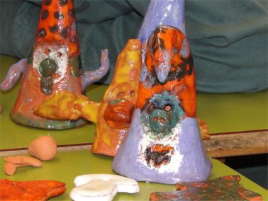 Die Kinder können erleben, wie sich das Material Ton durch das Brennen verändert und zu attraktiven Dekorationsgegenständen wird.