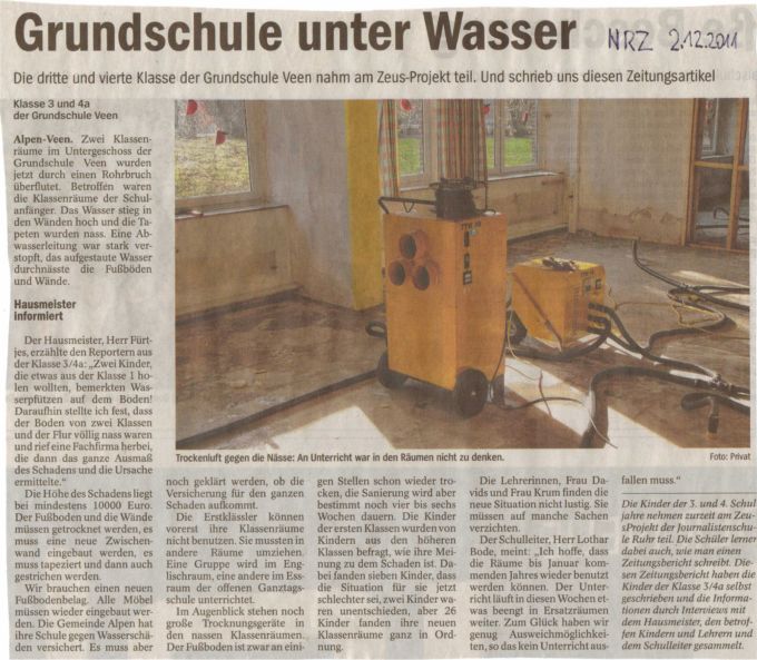 Die Trocknung wird noch bis weit in den Dezember hinein andauern. Danach kommen die Maler und Fußbodenleger. Die Kinder der ersten Klassen müssen noch einige Wochen auf ihre Klassenräume verzichten.
