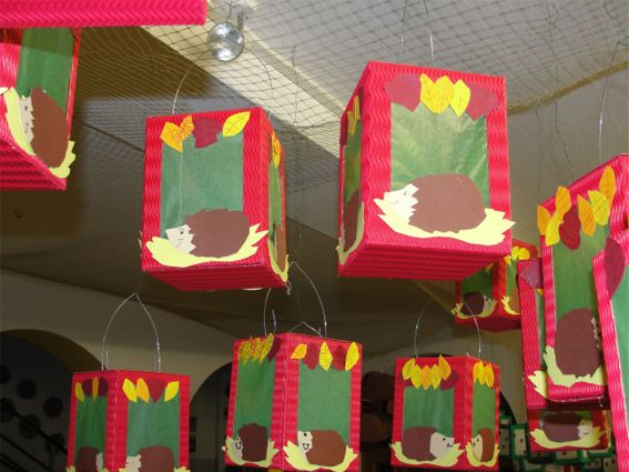 Auch in diesem Jahr kam am Tag des Martinszuges in Veen der St. Martin in die Schule. Die kleineren Kinder hatten Gelegenheit, mit dem St. Martin zu sprechen, Fragen zu stellen und ihm die gut gelernten Martinslieder vorzusingen. In der Halle der Schule waren die Laternen, die in den Klassen gebastelt worden waren, zu bewundern. Fotos: L. Bode |