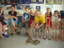 Im Kreis der Kinder der 2a zeigten die Schildkröten kaum Angst.