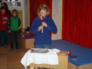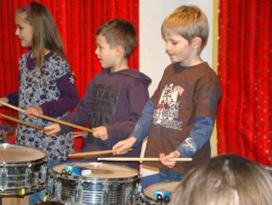 Heien hatte mit einigen Kindern Trommeln geübt.