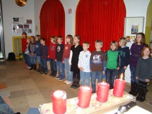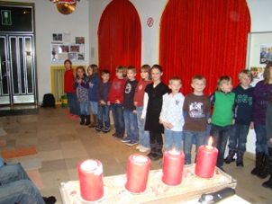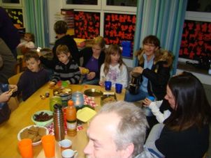 der Feier im Foyer treffen sich die Eltern und Kinder bei