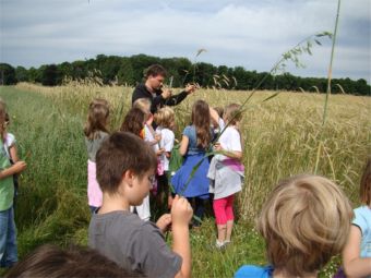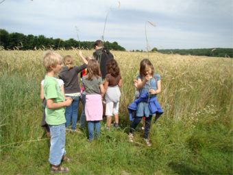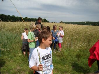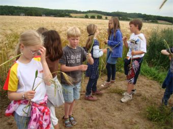 An einem schönen Sommertag zogen die Kinder der Klasse 2 zu den umliegenden Getreideäckern um Getreidesorten kennenzulernen. |