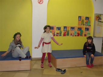 Die Klasse 4 führt bei der Einschulungsfeier ein Theaterstück zur Begrüßung auf. |