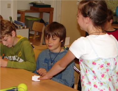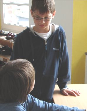 Sie bereiten sich für ein Fußballspiel vor. Ben war nicht gut im Fußball, aber heute schaute Anna zu . Ben strengte sich an aber nichts gelang ihm. Da sagte Herr Seibmann: „Ben, versuch doch mal Linienrichter?“. Aber trotzdem, Ben passte nicht auf und so musste Herr Seibmann ihn immer ermahnen.