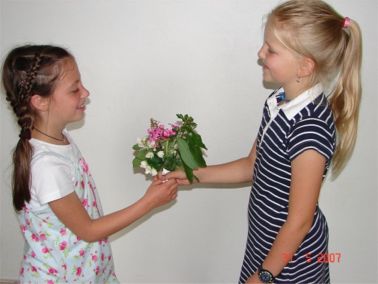 Anna brachte einen Blumenstrauß
