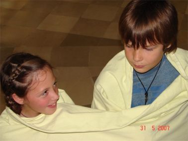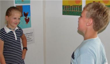 Zunächst lasen alle Kinder der Klasse das Buch. Die einzelnen Kapitel wurden an Kinderpaare vergeben, die dazu eine Zusammenfassung schrieben. Die Texte wurden in Schreibkonferenzen verbessert. Jede Gruppe überlegte sich dann Themen für jeweils 2 Fotos, arrangierten die Bedingungen zum Fotografieren und stellten mit den Darstellern die Fotos.