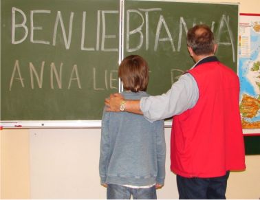 Anna und Ben trafen sich in den Ferien nicht mehr. Ben träumte von Anna . Er hoffte, dass sie am ersten Schultag fehlen würde. Anna war aber da. Sie stand mit Jens auf dem Schulhof. Ben passte in der ersten Stunde nicht auf. In der Pause stand er alleine für sich. Als es klingelte trottete er den anderen langsam hinterher. Als er ins Klassenzimmer trat stand an der Tafel in großen Buchstaben: BEN LIEBT ANNA. Herr Seibmann legte seine Hand auf Bens Schulter. Die Klasse schrie durcheinander:,, Ben liebt Anna!, Ben liebt Anna!“ Ben konnte sein Schluchzen kaum unterdrücken. Er konnte nicht in die Richtung schauen in der Anna saß. Herr Seibmann ging an die Tafel und schrieb mit eben so großen Buchstaben unter BEN LIEBT ANNA ANNA LIEBT BEN .