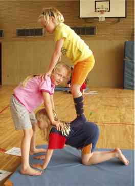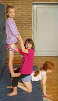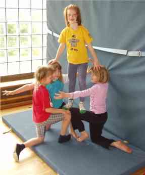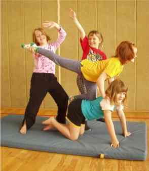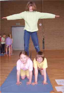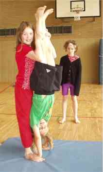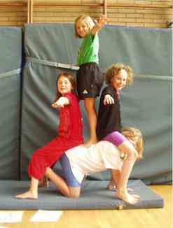 | Die nachfolgenden Fotos (S. Thol) zeigen die Mädchen aus beiden Klassen beim "Mädchenturnen" |
