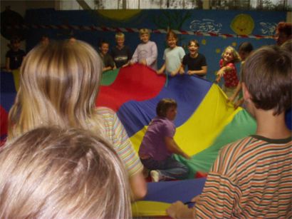 surfende Lisa. Wir haben Disco gemacht und Frau Blaschke hat im Wald einen