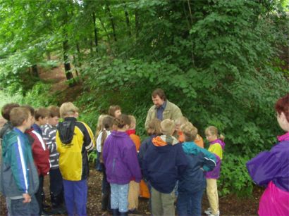 weiter in den Wald hinein, bis wir an die Quelle kamen. Frau Haustein hatte