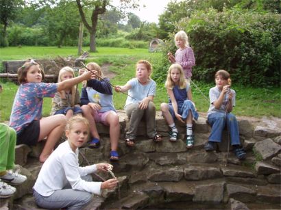 Tobias warf einen Stiefel in den Teich. Ratlos überlegten wir, wie wir ihn aus dem Teich fischen konnten. Schnell rannten Vinci und ich zum Haus zurück und zogen die Badesachen an, um mutig in den Teich zu springen Wir schwammen und tauchten, bis Vinci den Stiefel gefunden hatte .Nachdem wir dann geduscht hatten, haben wir noch Stockbrot über einem offenen Feuer gebacken- Anschließend haben wir noch eine Nachtwanderung gemacht, aber ich habe keine Angst gehabt! Sebastian Quartier, Klasse 3aStiefelrettung von Sebastian und VinciEs war Donnerstag. Tobias hat einen Stiefel in den Teich geworfen und Lisa hat versucht, den Stiefel zu kriegen. Der Stiefel hat sich aber mit Wasser gefüllt und sank. Sebastian ist in den Teich gestiegen und Vinci ist hinter ihm hergelaufen. Sebastian hat den Stiefel nicht gefunden und Vinci auch nicht! Sebastian sagte:“ Da, unter dem Platz, wo Lisa steht!“ Vinci ist dorthin gegangen und hat den Stiefel hochgehoben. Vinci hat das Wasser aus dem Stiefel geschüttelt. Frau van Gelder hat Sebastian und Vinci fotografiert. Vinci ist geschwommen und Sebastian ist getaucht!
