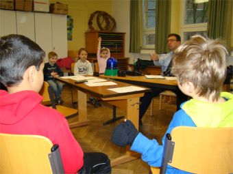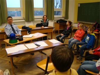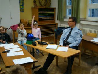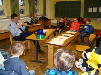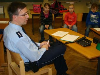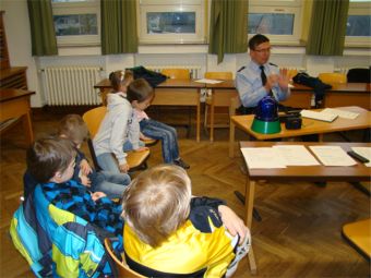 An dieser Station ging es um das richtige Verhalten im Falle von Einbruch, Diebstahl, Unfall und Feuer. Die Kinder lernten, wie man richtig den Notruf absetzt, wie man auf Fragen des Polizeibeamten richtig antwortet und wie man sich auf das Wesentliche konzentriert, damit nicht wertvolle Zeit ungenutzt vergeht. Die Kinder konnten die Telefongespräche mehrfach ausprobieren. Am anderen Ende - in der Notrufzentrale – saß immer Polizeioberkommissar Küppers. Das Verhalten der Kinder wurde anschließend reflektiert. Wichtige Grundregeln wurden gelernt. |