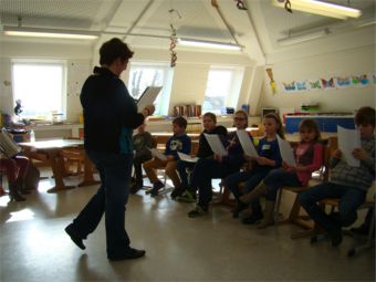 An dieser Station ging es um Spaß am Singen. Frau Roos und Frau van Bebber hatten sich lustige Lieder ausgesucht, die sie mit den Kindergruppen in kurzer Zeit lernen und singen konnten. Die Texte waren lustig, einprägsam und leicht zu lernen. Es wurden nicht nur die Stimmbänder, sondern auch der ganze Körper mit eingesetzt. Die Kinder genossen diese Station sehr.