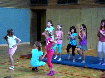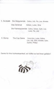 Am 25.5.2012 sind alle Klassen der Grundschule und die Kindergartenkinder vom St. Nikolaus Kindergarten mit ihren Erzieherinnen zur Aufführung Akrobatik und Stomp gekommen. Die Kinder der OGS haben lange geübt und sich auf die Aufführung vorbereitet. |
