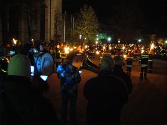 Auf dem Schulhof endete der Zug. Die sternenklare Nacht, das trockene Wetter, die vielen Lichter und die zahlreichen Gäste vermittelten eine sehr stimmungsvolle Kulisse.