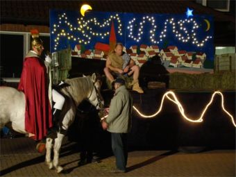 Am 12.11.2012 stellte sich der Martinszug Veen vor der schön geschmückten Grundschule auf. Der Zug setzte sich gegen 18 Uhr in Bewegung und zog durch das mit vielen Lichtern und Transparenten geschmückte Dorf. |